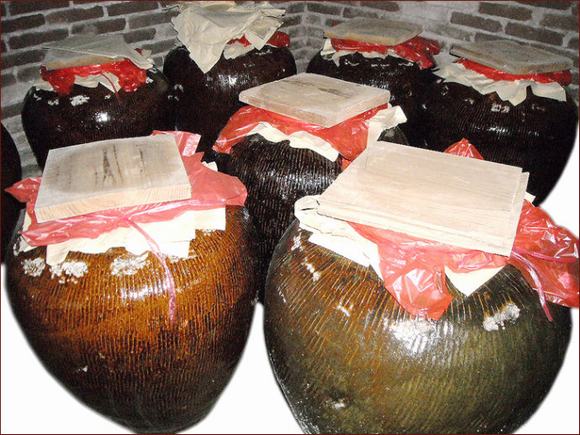 原料加曲搅拌均匀后,可以入缸(池子、窖池、桶等,要做浓香型,必须在窖泥池发酵)密封发酵,发酵温度28-38℃,最高不能超过40℃。发酵过程要检查温度,温度过低要采取保温措施;温度过高要采取降温措施。发酵过程不能打开,避免空气进入,杂菌污染。发酵期25-30天,。如果要提高酒质,发酵期可以延长到40-45天。