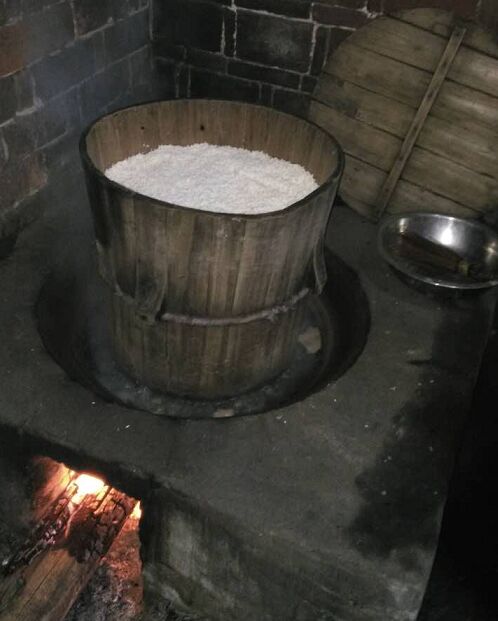 7.18天后发酵完成,把粮食倒入宣传设备蒸馏,蒸出头酒58度,温度30度;出