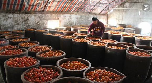 山西省运城市稷山县小阳坡村67岁的崔万荣,每到秋冬时节,都会和家人蒸制柿子酒。柿子酒,口感香醇,舒筋活血,在寒冷的冬天喝一口,不仅暖胃,还可以治疗关节炎。多年来,村里人都会将自家地里种植的纯天然柿子保留一部分,用传统工艺将柿子在缸内发酵