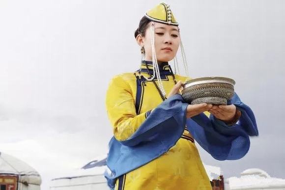 奶酒,蒙语称“阿日里”。相传早在元朝初期,漠北处于大动乱、大变革时期,当时的蒙古各部落七零八落,部落之间较量实力,各选君主。刚满17岁的铁木真继承了父亲的遗志,骑上战马,挥旗重建家园。铁木真的妻子在家里,一面思念远征的丈夫,一面制作奶食品。有一天,她在烧酸奶时,锅盖上水珠流到了旁边碗里,她嗅到特殊的奶香味。一尝味美、香甜,还有一种飘飘欲仙的感觉,她渐渐地在生产生活中掌握了制酒的工艺,并简单地制作了酒具,亲手酿造。在铁木真做大汗的庆典仪式上,她把自己酿造的酒献给丈夫成吉思汗和将士们,大汗和众将士喝了以后,连声叫好,从此,成吉思汗把它封为御膳酒,起名叫赛林艾日哈。每当蒙古族向您敬献哈达和奶酒时,是对贵客的最高礼仪。奶酒便成为蒙古族接待上宾的必备佳酿。