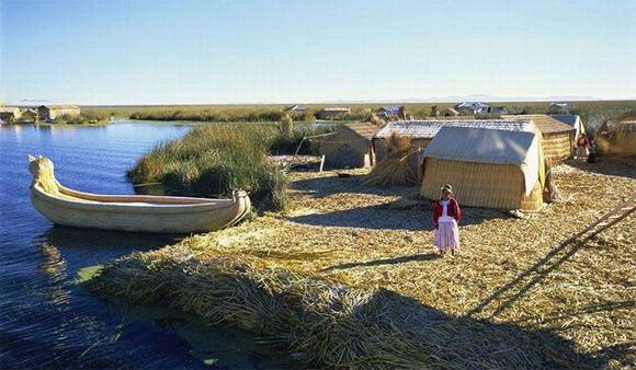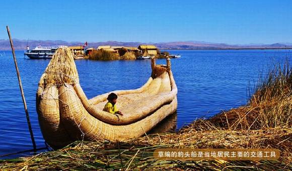 秘鲁和玻利维亚的交界处有一个美丽的高原湖泊—的的喀喀湖,是南美洲海拔最高、面积最大的淡水湖。当地居民一直保持着古老的印第安文化传统。其中乌洛丝人部落为躲避战乱生活在湖中用芦苇编制的浮岛上,以捕鱼、捕食鸟类为生,形成了独特的生活习俗。