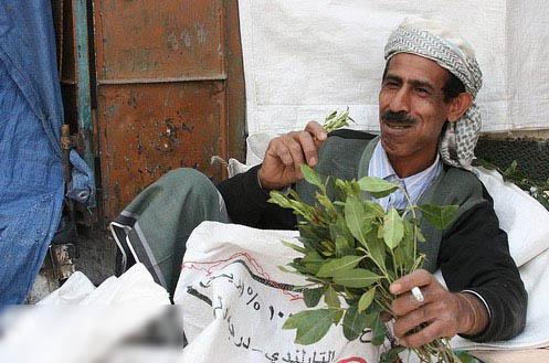 也门人民嚼食卡特,与我国南方一些地区的人们嚼食槟榔的习惯颇为类似。但前者的效果显然更加强烈:现代医学证明,卡特树叶中含有一种名为卡西酮的生物碱,能刺激大脑,令人在短时间内精神十足,有兴奋感,但长期使用会上瘾。因此,不少阿拉伯国家都将其视为“禁药”。在沙特和阿联酋,食用或者贩卖卡特者甚至要面临被判刑的风险。