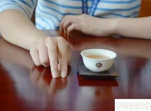 食指或中指敲击桌面,相当于点下头即可,如特欣赏晚辈,可敲三下。
