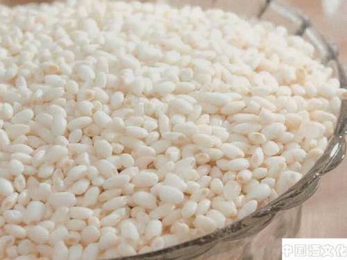 糯米是酿酒的优质原料,酿出的酒回甜、浓厚。其淀粉含量极高,几乎百分之百为支链淀粉,经蒸煮后,质软性黏可糊烂,单独使用容易导致发酵不正常,必须与其他原料配合使用。