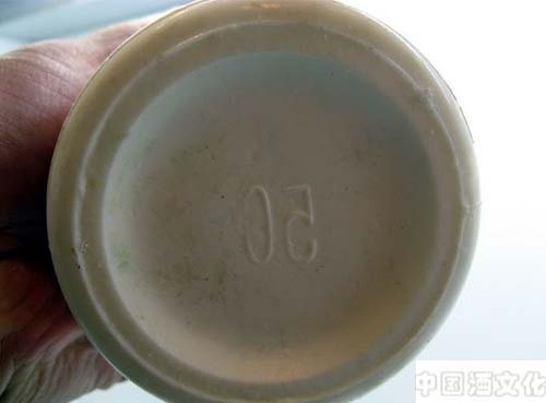 6、还有一个特征是:瓶底带数字。这里的数字可能是制瓶企业或者工序的代号。数字一般一至二位,由“0”和9个阿拉伯数字组成。一般都是反的字体。