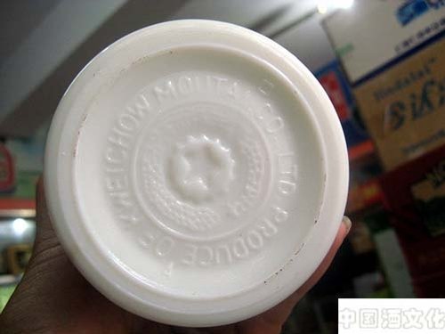 这一时期的仿品主要表现在:图案变形、数字不清、立体感不强等等。比较有代表性的如前一段我们分析过的那瓶07茅台,它的瓶底就集中表现了仿品的特征。见下图。