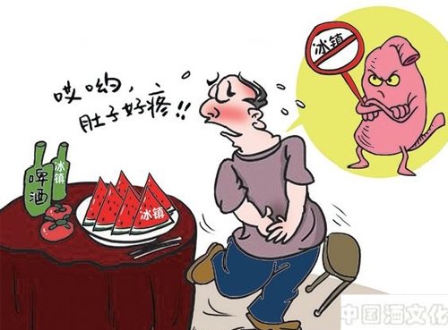 冰镇啤酒更可使肠胃道温度突然下降,毛细血管骤然收缩,从而诱发胃肠炎,出现痉挛性腹痛和腹泻。
