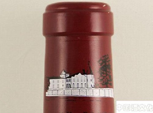 在拉菲古堡的酒瓶颈上的贴标印有拉菲古堡的图样。