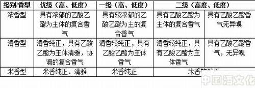 *浓香型酒:符合标准的,可写为:“窖香浓郁”,一般不写具有乙酸乙酯为主体复合香气。