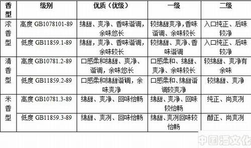 ⑥各种香型的标准:(这里主要介绍的是我国几种白酒香型)