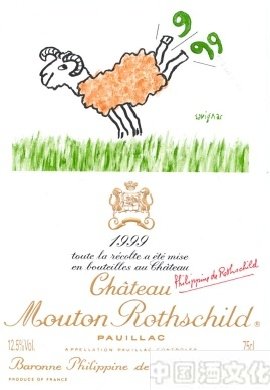 2000—当年的酒标是木桐堡酒庄纪念千禧年的特别版。庄主菲利嫔女男爵特地从木桐堡葡萄酒艺术博物馆挑选了一个16世纪镀金奥斯伯格羊(Augsburg Ram)的小雕像作为当年的主题。2000年木桐堡酒瓶没有贴酒标,而是由技艺精湛的工匠运用先进的镀金技术直接在玻璃酒瓶上刻了这只羊的形象,使得整瓶葡萄酒成为一件精美的收藏品。