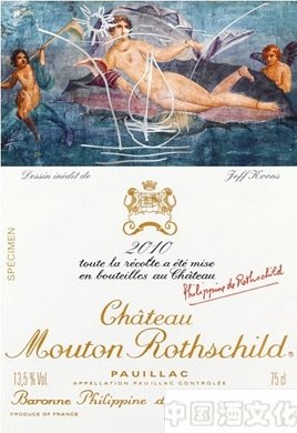 2010—美国著名雕塑家杰夫·昆斯 (Jeff Koons,1955年- ) 设计,他的设计结合了“维纳斯诞生”(庞贝古城的一幅壁画),图中描绘的是手持酒杯的维纳斯女神卧于贝壳之上,太阳之下的轮船正渐渐驶向一款精致的葡萄酒。