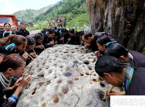 这里壮族人民最喜欢的酒——煨酒,煨酒在壮乡有着重要的意义和用途,通常在祭祀、重大节日、婚丧娶嫁和重要客人来访时才用。壮语称“喽嘣”(用田泥封存起来的酒之义),也被外来的客人尊称为壮乡的红酒。该酒采用土法酿造,因在酿造过程中,将酒装在坛内,先在火边烤开,并长期置于火上存酿,由此得名"煨酒"。主产于贵州省从江县西部加榜乡、秀塘乡、刚边乡、宰便镇四乡镇的壮族村寨,是壮族的传统酿造的美酒,也是从江县最具地方特色的美食之一。从制作到饮尝最快需要存酿两年以上,传酒存酿的时间越长,酒的浓度越高,酒味越香甜。煨酒用原生态无公害的壮乡香糯和自制的酒曲为主要原料,用甘甜的山泉水和伴,放在瓷器坛子里发酵,具有甜、香、保健和美容之功效,可与葡萄酒、黄酒相比伦美,越来越受人们的青睐,成为饭桌上的美酒。
