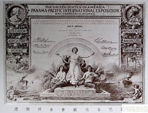 藏品三:巴拿马—太平洋国际博览会金牌证书