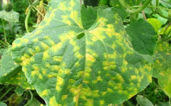 随着病情的不断发展,黄瓜的子叶很快变黄,枯干。成株期发病,叶片上初现浅绿色水浸斑,扩大后受叶脉限制,呈多角形,黄绿色转淡褐色。