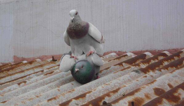 4、杂交配:采用没有血缘关系的鸽子进行配对,杂交出来的鸽子对外界病菌的侵袭抵抗力更强。