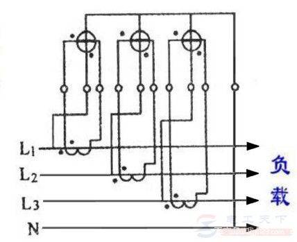 有关三相四线电表的接线方法,三相四线电路可以视为三个单相电路,连接三个相同的单相表时可用一个三相四线电表代替,三个单相电路的功率之和就是总功率。