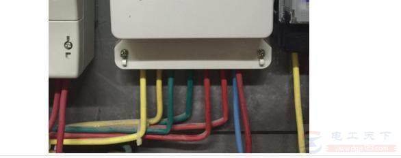 当电线颜色是黄绿红时,注意下进线顺序,最后的10接点是零线,全部使用蓝线。