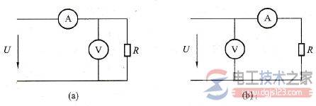 用电压表和电流表测量直流电阻时,将电压表并接在被测电阻两端,同时将电流表串接入电阻回路,然后分别读取电压U和电流I的数值,再依据欧姆定律R=U/I即可求出待测电阻。