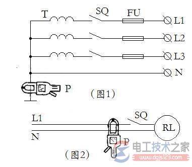 当查明主干线无问题后,再用钳形电流表对单相分支线进行测量检查,检查测试方法如图2所示。