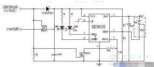 可知,当处于充电状态和充满电状态时分别会点亮双色二极管中的一个。