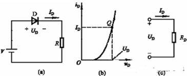 (a)电路(b)二极管伏安特性和工作点Q(c)二极管的直流电阻