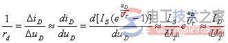 rd是用以Q点为切点的切线斜率的倒数。显然,而Q点在伏安特性上的位置不同,rd的数值将不同。根据二极管的电流方程