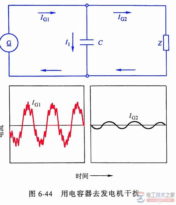 为了防止干扰,汽车上对电子设备采取各种防干扰措施。(www.dgjs123.com)如图6-43所示,