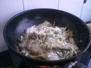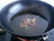 4.把多余的食用油倒走,小火慢慢翻动,放入适量的,葱,姜,蒜。