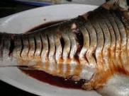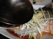 5.把蒸好的鱼从锅里拿出来撒上豉油
