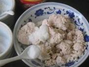 4.加盐,糖,鸡精,把酒糟颁碎了混合匀。