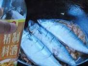 5.开大火,放入鲐鲅鱼。