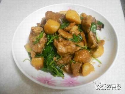 鸡肉和土豆都熟了,放入九层塔,再放入鸡粉就可以了