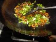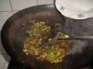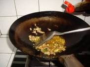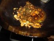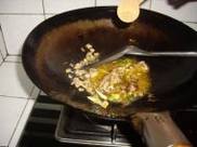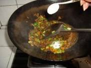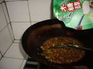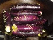 7.锅内放油,待油热后把茄子放入锅内,将茄子煎软