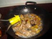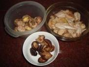 1.鸡翅加少许酱油,姜片蒜头拍碎腌制。香菇提前泡发好。