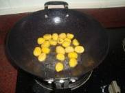 5.锅中加适量油把栗子放进去先炸一下。