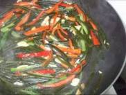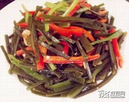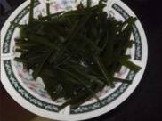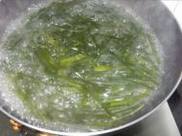 4.锅里放清水烧开飞,放海带丝灼2、3分钟。