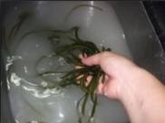 2.海带丝买回来先浸泡一会。有洗米水浸泡最好。没有就用清水。