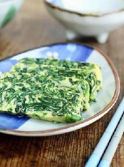 这款小菜,香嫰可口,蛋奶香气中夹杂着菠菜的清香,爽口极了。说起菠菜就会想到动画片中那个爱吃菠菜的大力水手。菠菜有补铁、补血之功效,而且含有多种维生素,草酸、苹果酸、柠檬酸等有机酸的含量比其它的蔬菜明显丰富。据说,二十世纪三四十年代的美国小朋友普遍缺铁,所以动画公司才会设计这样一部动画片,播出后效果奇好!呵呵,爱来让宝贝们爱上它还真得费点脑筋。