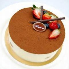 马斯卡彭奶油芝士450克,浓鲜奶油710毫升,粉状白糖30克,香草精1/2茶匙,咖啡利口酒45毫升,速溶咖啡粉1茶匙,海绵圆蛋糕1个,25厘米直径,无糖可可粉20克