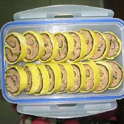 用保鲜膜把卷好的如意卷包紧,放进蒸锅中蒸10分钟左右,放凉,切块即可。