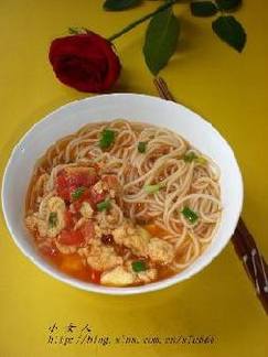 番茄1个,面条适量(我平时都是做一碗,所以只需要一个番茄,如果做得多,可适量添加番茄),大蒜1畔,豆瓣酱一勺,盐、味精、鸡精等调味适量。