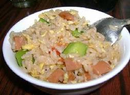 3.最后放米饭(米饭要头天剩的才好吃)放盐、胡椒粉翻炒均匀出锅