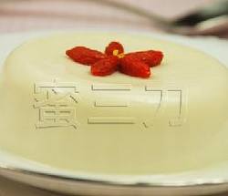 3)待溶液变温后倒入模具,凉后入冰箱冷藏2小时即可。吃时上面放几个用温水泡开的枸杞子。