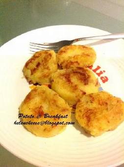 马铃薯蒸熟,压烂+胡椒粉+一点盐,培根会咸,盐可以不放,自己喜欢就可以。