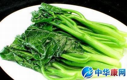 芥蓝菜对肠胃热重、熬夜失眠、虚火上升,或因缺乏维生素C而引起的牙龈肿胀出血,很有帮疗功效。坊间流行将芥蓝茶切片,煮成清汤,带温饮用,如牙血较严重的话,可加入 西洋菜 和莲藕同煮。芥蓝菜含丰富的维生素A、C、钙、蛋白质、脂肪和植物醣类。有润肠去热气,下虚火,止牙龈出血的功效。