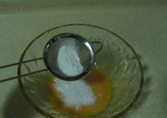 3、在蛋黄中筛入混合的低粉与玉米淀粉