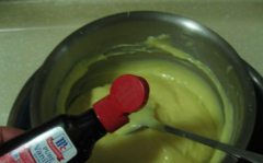 11、加入几滴香草精,冷却后保鲜膜盖起来,放到冰箱冷藏保存