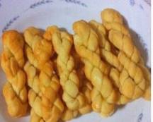 九、下麻花胚慢火炸七八分钟至两面金黄熟透出锅
